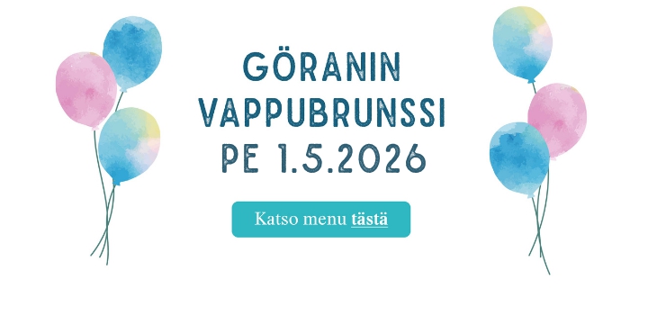 Aurajoen alajuoksulla, Turun linnan välittömässä läheisyydessä sijaitsevaan ravintolaan voi poiketa arkisin lounaalle, kahville tai vaikkapa lasilliselle. Lauantaisin ja sunnuntaisin on tarjolla Göranin viikonloppumenu. Viikonloppuisin valittavana on todella pidetty saaristolaispöytä tai herkullisia à la carte -annoksia kuten kalakeitto tai lasten lämmin pääruoka. Näistä nauttii koko perhe!
